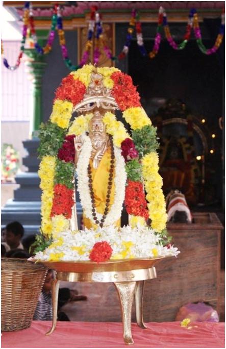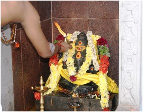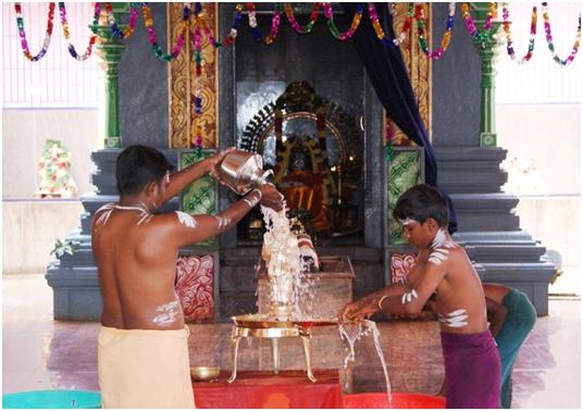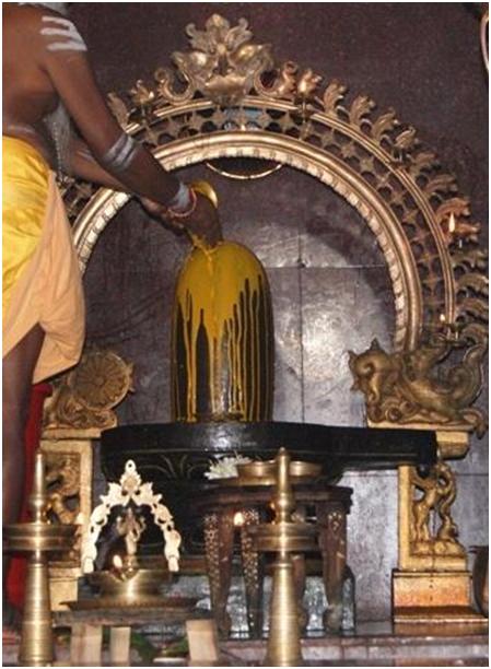 Más tarde se realizó un abhishekam al Shivalinga situado en el samādhi de Swamiji en el templo.